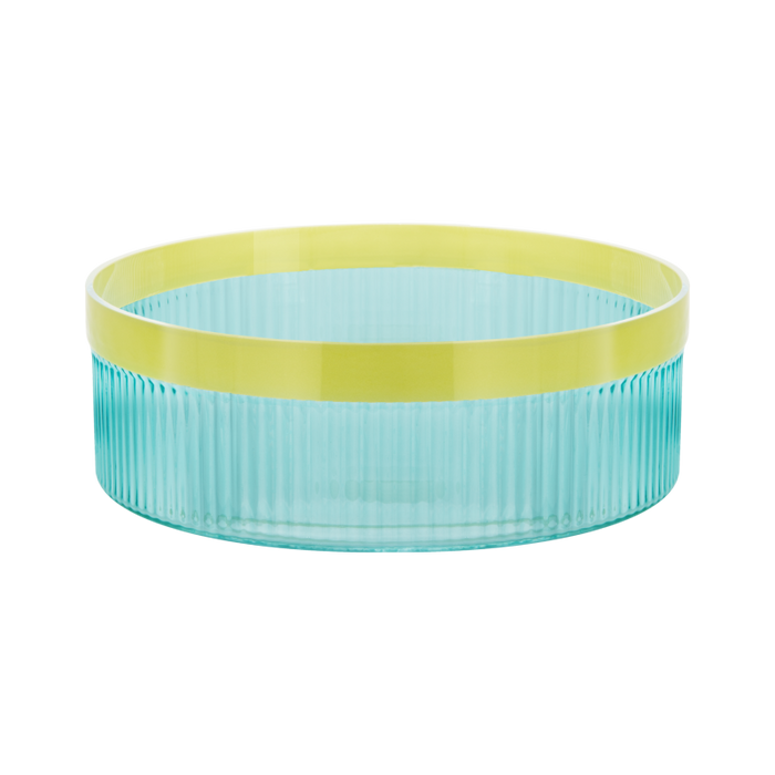 3 bis 4 WerktageOb auf dem Sideboard, dem Esstisch oder im Wohnzimmer – die Glasschale Groove ist ein echtes Highlight. Das gefärbte, geriffelte Glas spielt mit dem Licht und sorgt so für faszinierende Effekte. Mit ihrer besonderen Struktur und der farbigen Umrandung bringt die Schale Pflanzenarrangements, Obst oder den Salat zum Abendessen perfekt zur Geltung und verleiht dem Zuhause eine entspannte Eleganz und stilvolle Note.